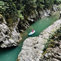 Взгляните на известные окрестности Сочи необычным способом! Стоя на большой надувной доске и орудуя веслом, вы покорите каньон сказочной красоты — с бирюзовой водой, среди вечнозелёных плюшевых зарослей. На дружеской прогулке в мини-группе вы влюбитесь в сапсерфинг, насладитесь приятной прохладой и тишиной недалеко от Сочи и Адлера.