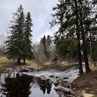 Очень симпатичный и несложный кольцевой маршрут вдоль реки Лососинка- неспешным шагом часа на 1,5-2 с чаепитием. Живописный берег, светлый карельский лес под рассказ Екатерины и в компании с ее умницей-компаньоном Фенриром, для нас это было прямо то, что нужно.