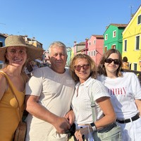 Следующая наша остановка — Бурано, очень нарядный остров, просто игрушечный. Дома здесь окрашены в яркие цвета: именно по цвету стен рыбаки, проживавшие тут издавна и возвращавшиеся из плавания, могли издали узнавать свои дома. И по сей день местные жители обязаны обновлять фасады каждые полгода и не имеют права сменить цвет дома без согласования с властями.