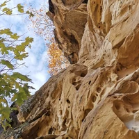 Сырная пещера. Она состоит из песчаника и по виду действительно напоминает пористый сыр. На самом деле такие углубления — результат выветривания под воздействием различных природных явлений: ветра, дождя, снега.