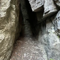 Каменная чаша. Это теснина-лабиринт из пещер, где каменные стены покрыты мхом, а воздух свежий и холодный.
