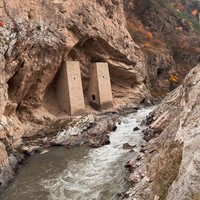 13:50 — Ушкалойские башни-близнецы, древняя таможня на Шёлковом пути (25–30 минут)